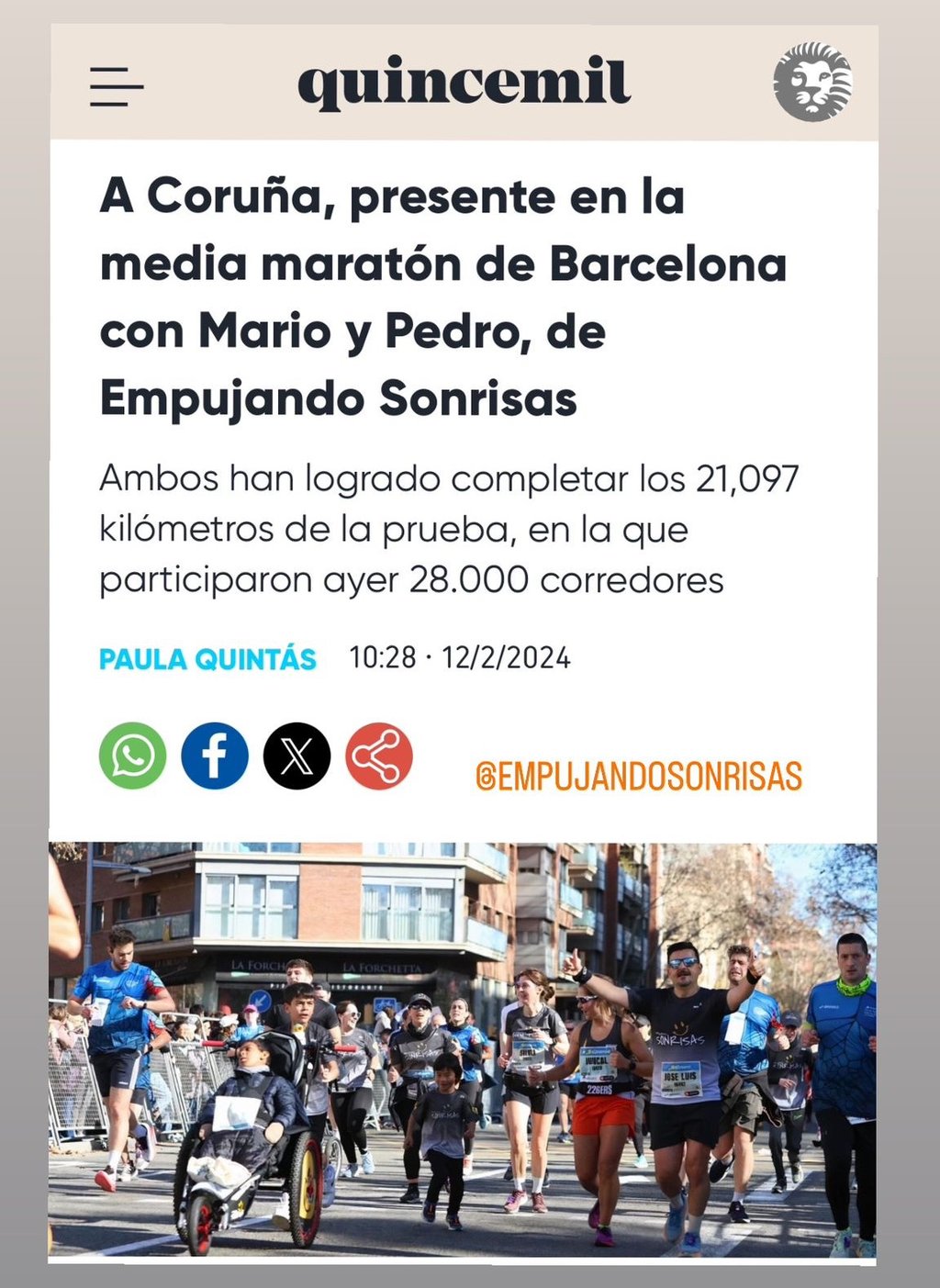 La Opinión Coruña se hace eco de la participación de Empujando Sonrisas en la media de Barcelona.
