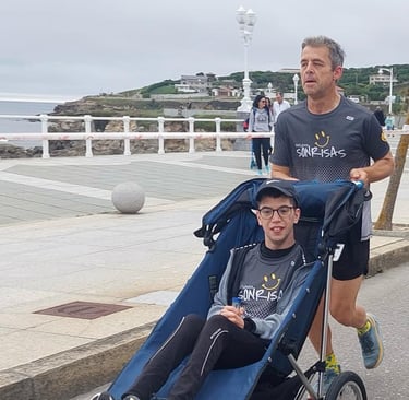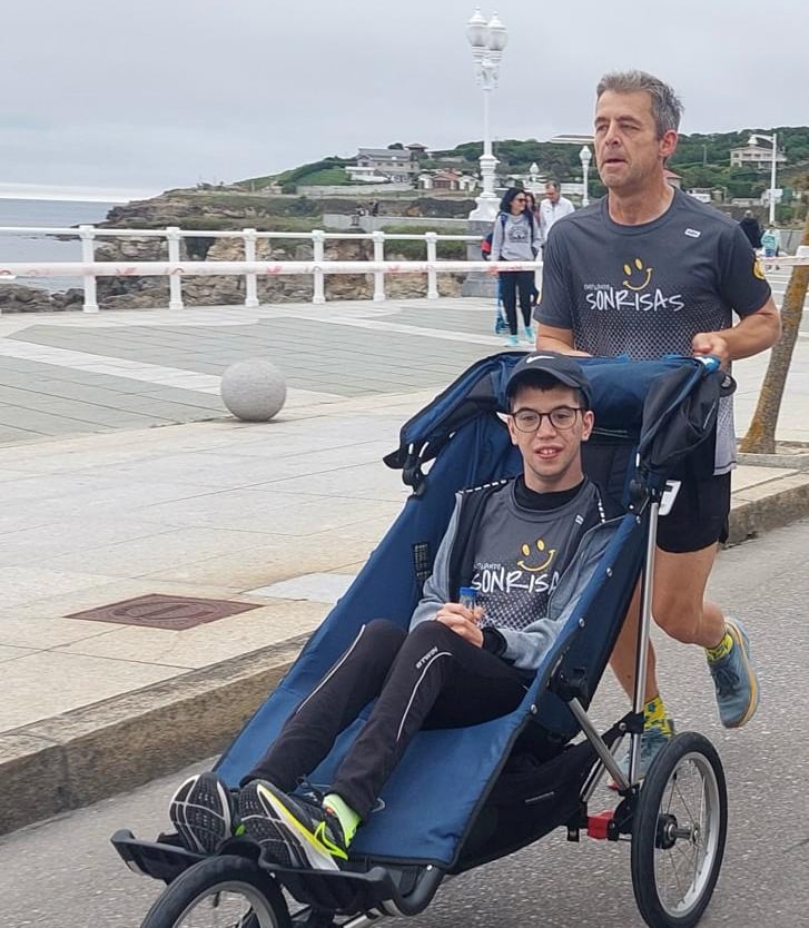 Si la nobleza tuviera nombre sería el de Alberto Maceiras. Es uno de los miembros fijos de la tribu, no se pierde ni un entrenamiento a pesar de los equilibrios que ha de hacer para ello. Corre desde el año 2015 y decidió unirse a Empujando Sonrisas por su gente. Lo que más le gusta son los viajes y reconoce que entre sus recuerdos inolvidables está correr por las calles de Gijón entrando en meta con la "mini tribu".