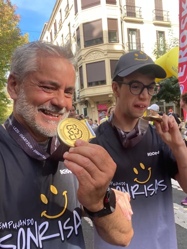 Viajamos a San Sebastián con las expectativas muy altas. Todo el mundo nos había recomendado correr esta carrera "al menos una vez en la vida", así que teníamos que probarlo. Confesamos que teníamos ganas pero también alguna duda, ¿sería para tanto? Y vaya que si lo era. Ahora, que ya hemos vivido esta experiencia, lo tenemos claro: sí, sí y sí. La Behobia-San Sebastián es mucho más que una competición deportiva. Son los aplausos, los "aúpa", los gritos de "txapeldunak", las miles de personas que se lanzan a la calle a animar a los "korrikolaris". Son los puntos de animación, el pirata del kilómetro 8, los ánimos del resto de corredores y los voluntarios, como nuestro querido Raúl Gómez, que se ofrecían a empujar las sillas en los momentos más duros. En el último kilómetro, cientos de personas gritaban nuestros nombres. En la recta final, Pedro se ha levantado y la tribu hemos cruzado juntos la línea de meta, ¡objetivo conseguido! Nos hemos abrazado y nos ha invadido una sensación de felicidad. En esta ocasión, además de empujar sonrisas, hemos mantenido las nuestras durante los más de 20 kilómetros del recorrido.