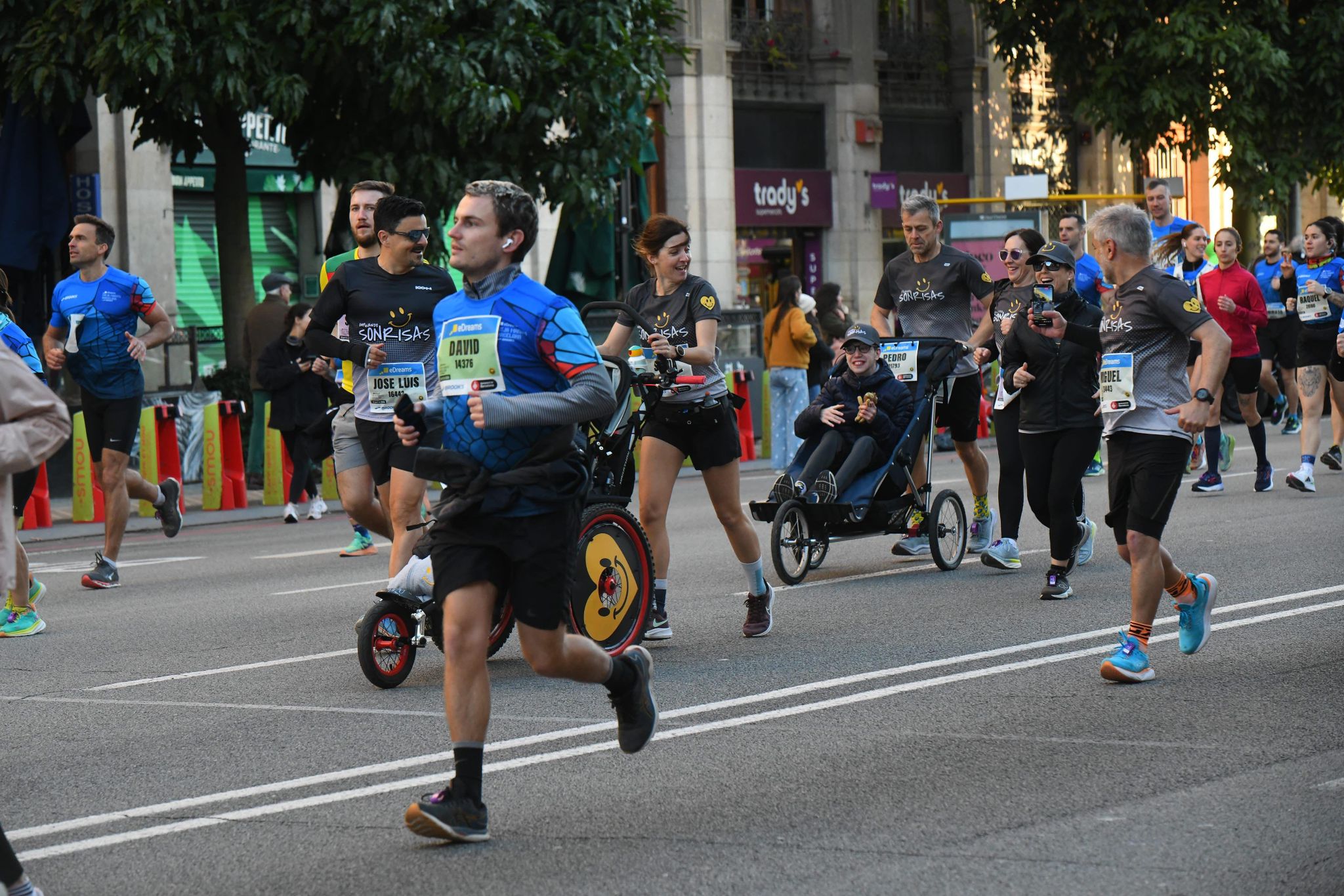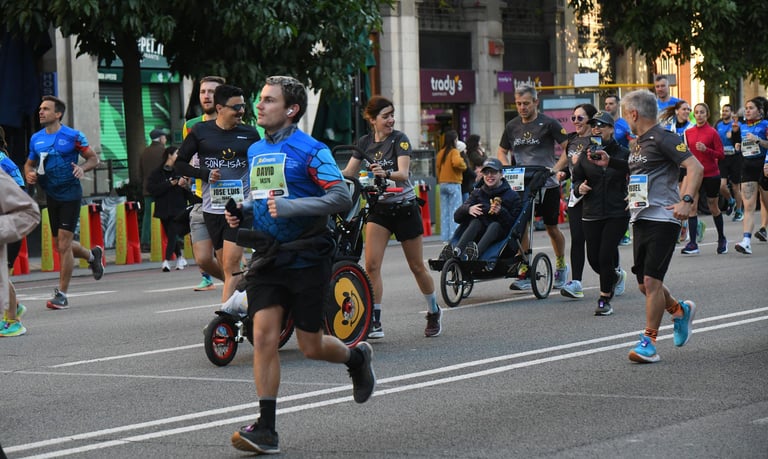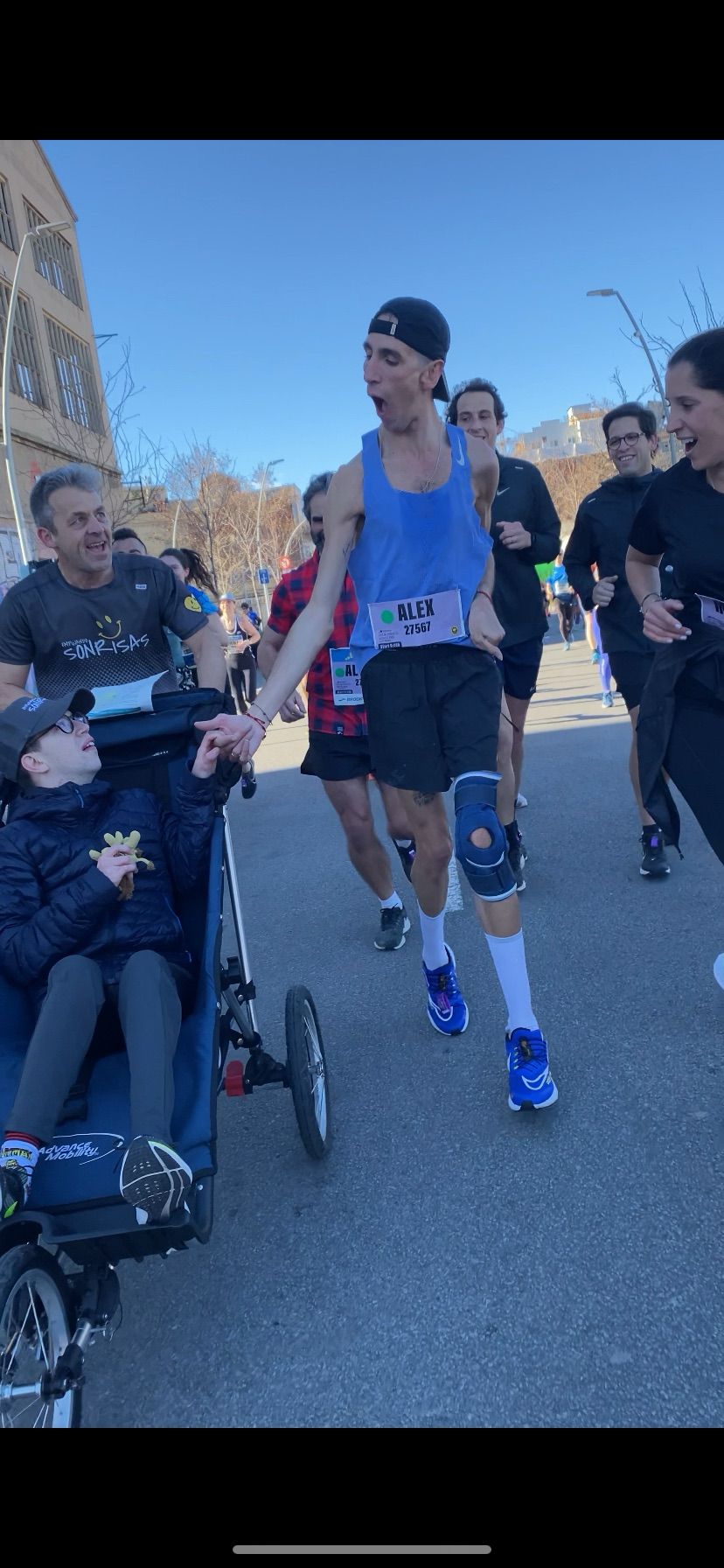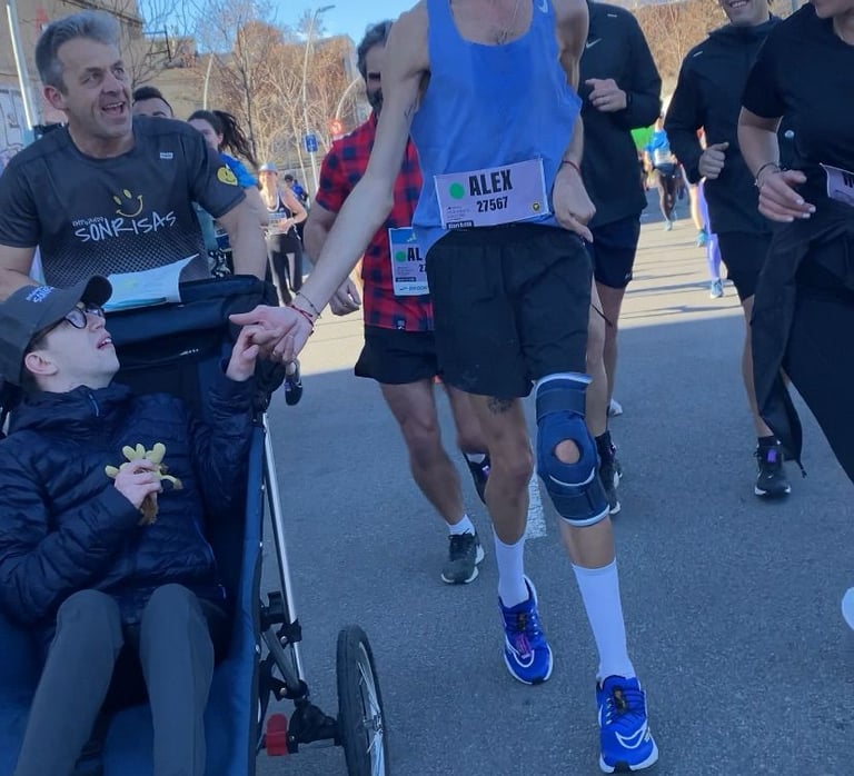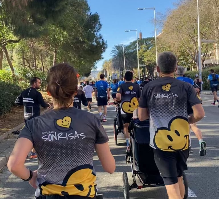 Hemos viajado hasta la ciudad condal para participar en su media maratón y poder poner nuestro granito de arena a favor de la inclusividad y la diversidad en el deporte. Ni el fuerte viento ha conseguido borrar nuestra sonrisa. En poco más de dos horas hemos completado los 21 kilómetros del trazado. En esta ocasión Mario y Pedro han participado con sus sillas adaptadas, empujadas por sus padres y otros miembros de la tribu. Un momento destacable ha sido nuestro encuentro con el corredor Álex Roca. Antes de llegar a meta, Pedro quiso levantarse de su silla para completar a pie los últimos metros de la carrera.