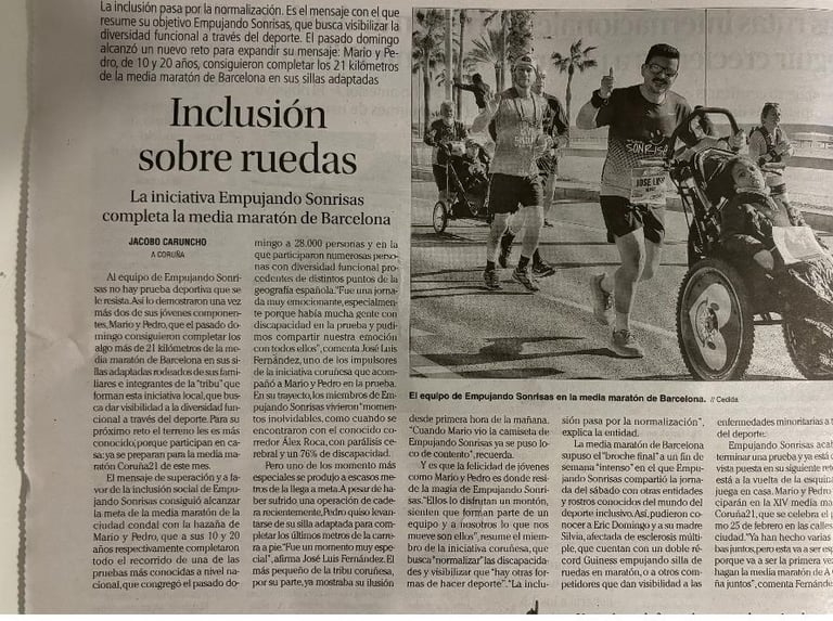 La Opinión Coruña se hace eco de la participación de Empujando Sonrisas en la media de Barcelona.